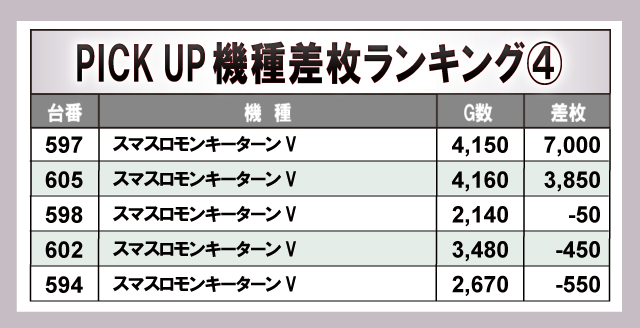 上表で取り上げている4機種は、プラス差枚数を達成している台が多く、高い熱量で店内を盛り上げた。いずれも多種多様に幅広い機種でチャンスが隠されていたようだ!