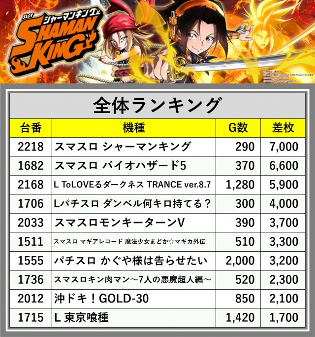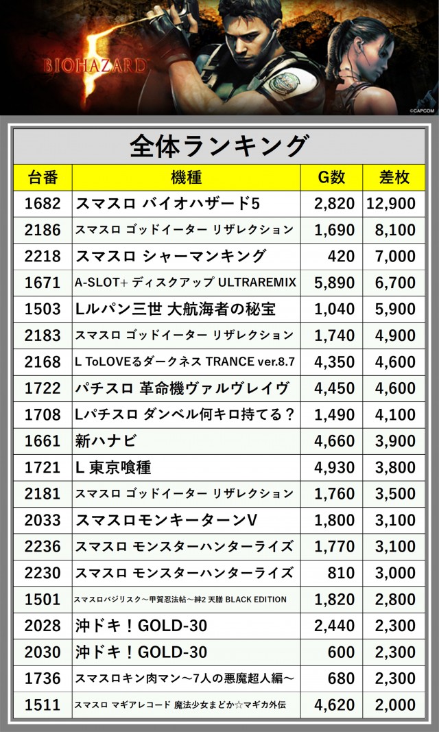 厳選された取材対象機種をはじめ、その他スロット全体から好記録が飛び出した!プレイヤーが楽しんだ1日を下記データにて振り返ってみて欲しい。