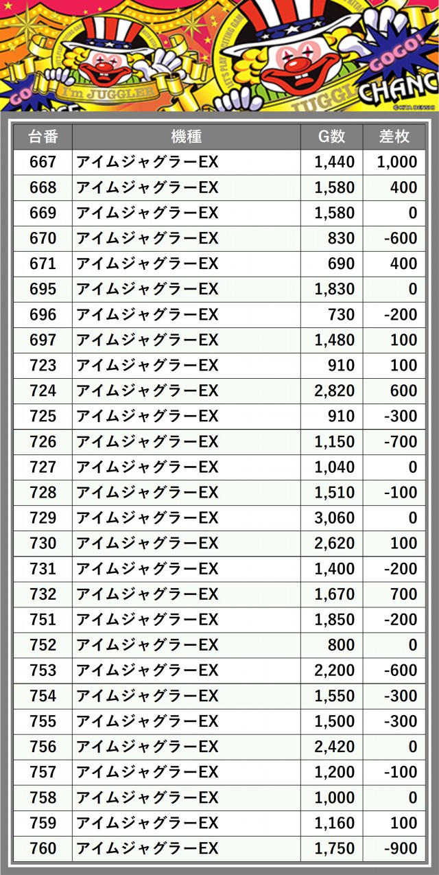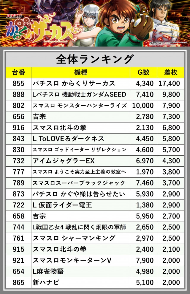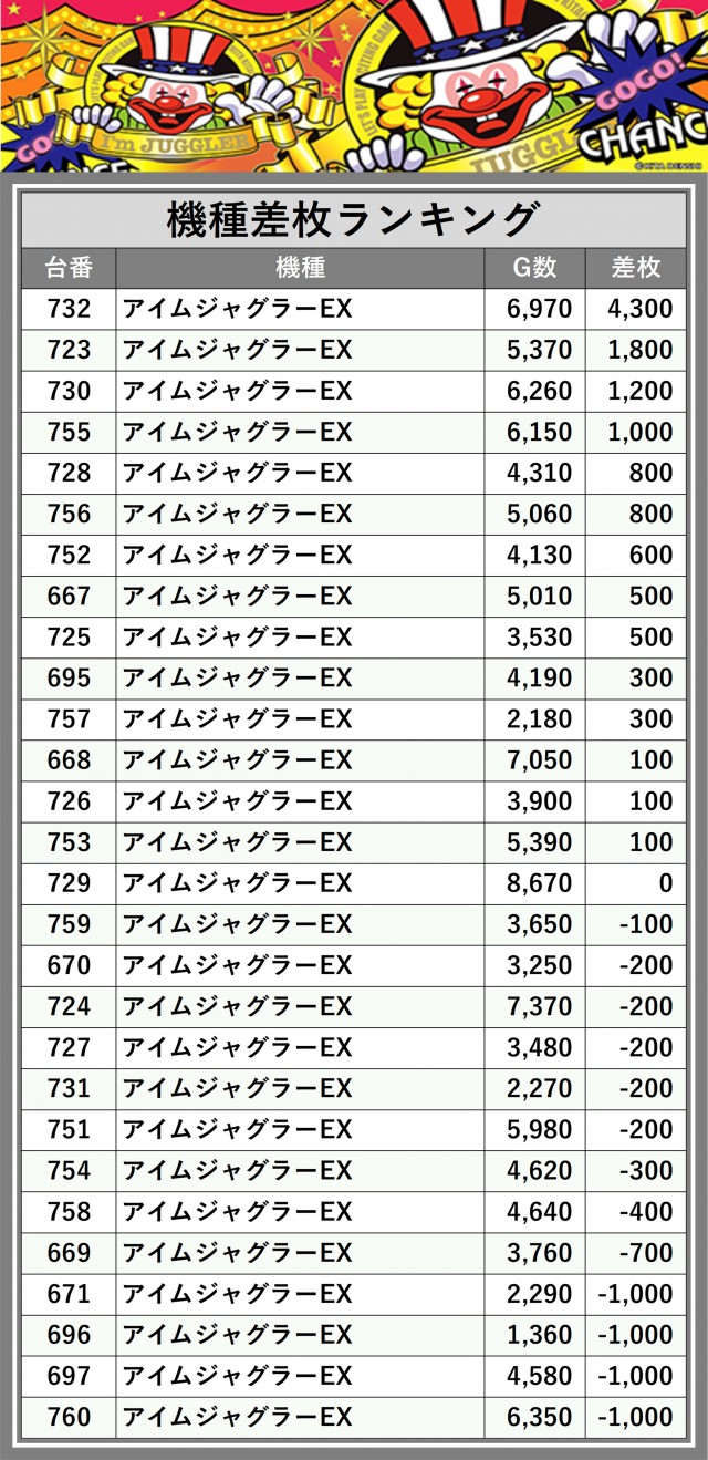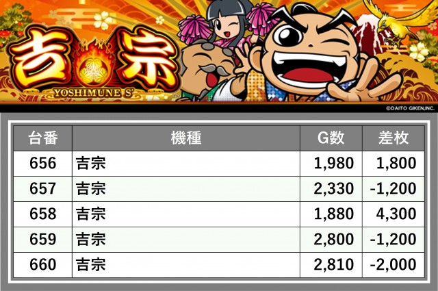 厳選された取材対象機種をはじめ、その他スロット全体から好記録が飛び出した!プレイヤーが楽しんだ1日を下記データにて振り返ってみて欲しい。