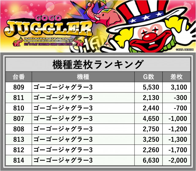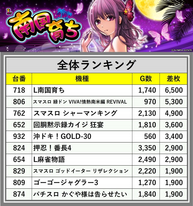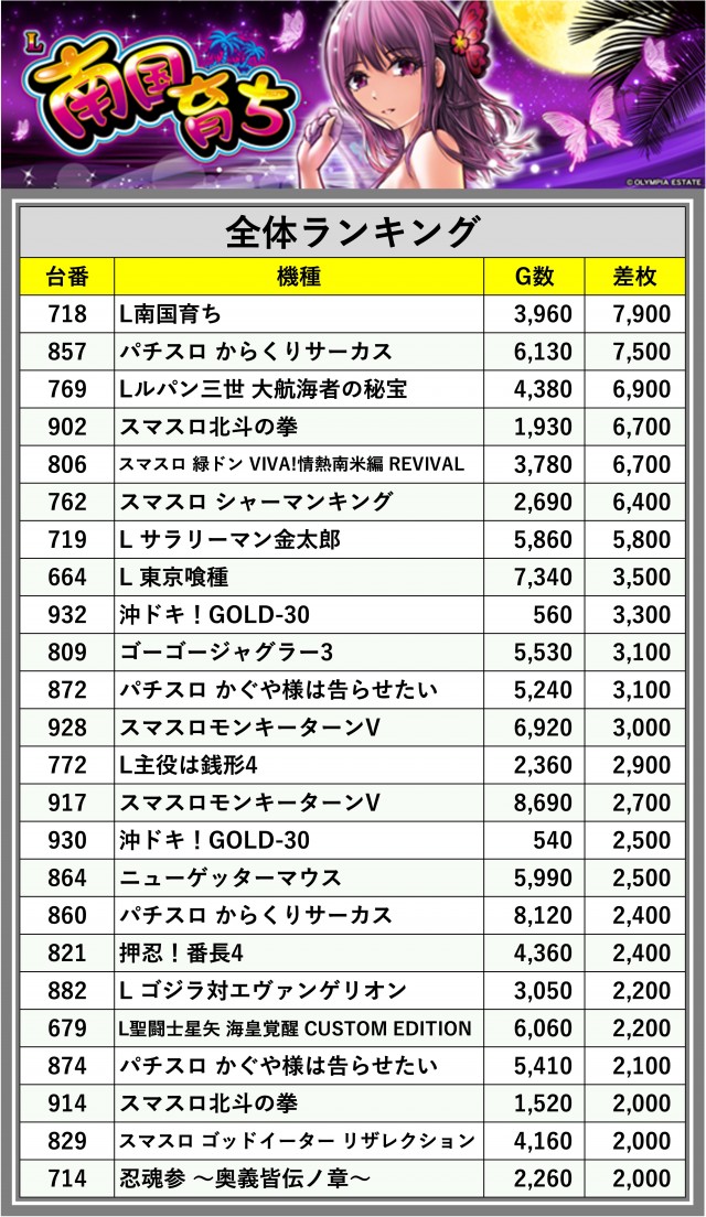 ※差枚数順に掲載しています