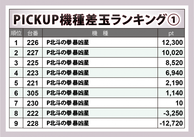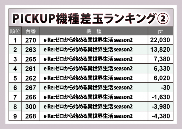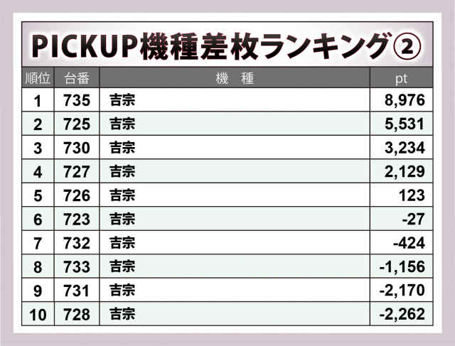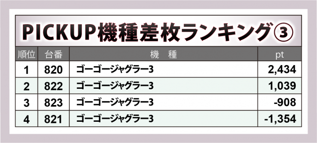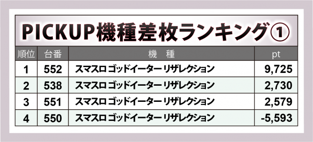 ここからは入手した出玉データと撮影写真を用いて当日の優秀台に迫っていく。