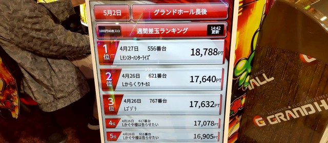 連休中、6日間におけるグランドホール長後店の出玉状況をお知らせしてきたが、いかがだっただろうか。