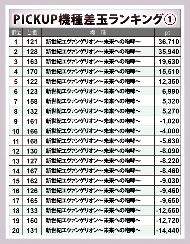ベテランの『新世紀エヴァンゲリオン~未来への咆哮~』では+36,000個付近に2台と、現行マシンに対抗する出玉を計上。