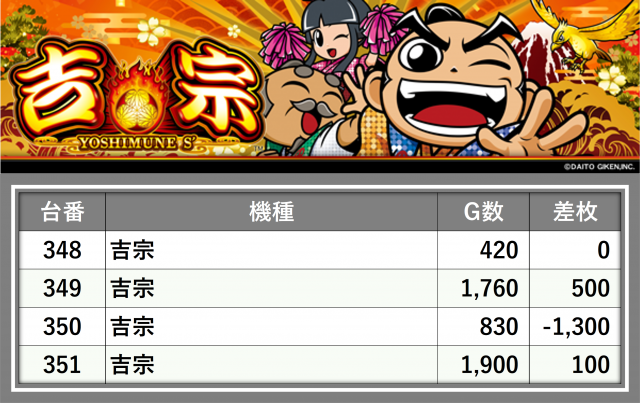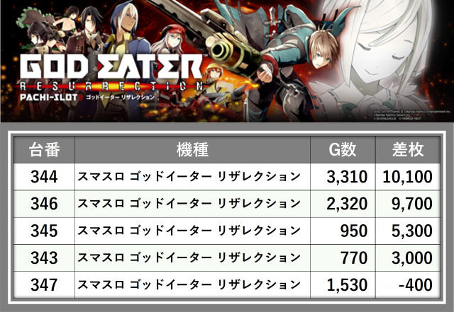厳選された取材対象機種をはじめ、その他スロット全体から好記録が飛び出した!プレイヤーが楽しんだ1日を下記データにて振り返ってみて欲しい。