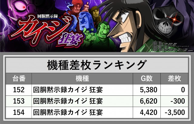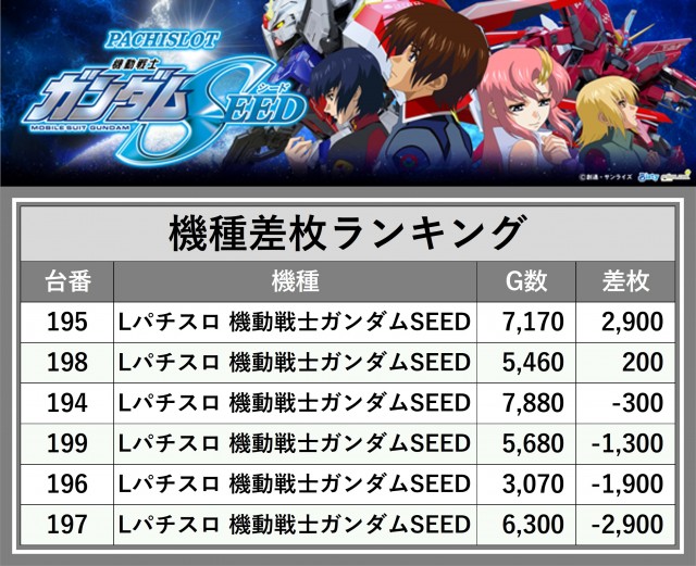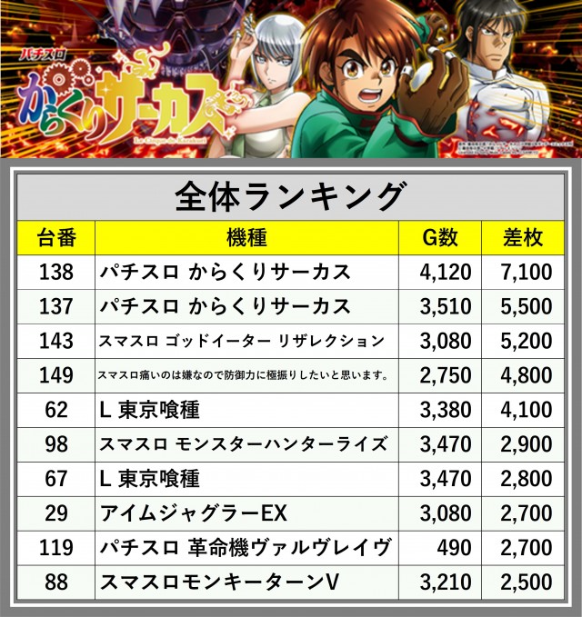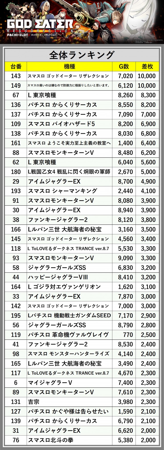 ※差枚数順に掲載しています