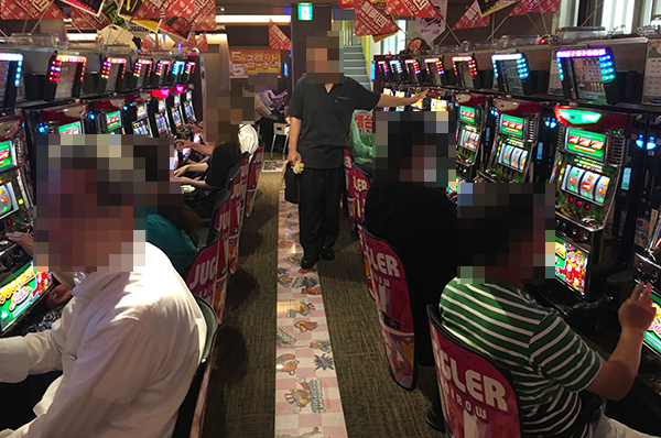 定番機種である海物語シリーズの稼働率も高く、シマ内はにぎやかな状況。