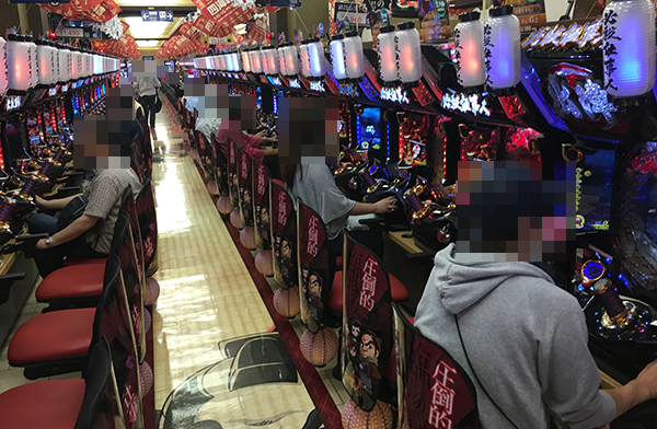16時を過ぎた頃の20円パチスロのなかで、とくに盛り上がっていたのが「バジリスク~甲賀忍法帖~絆」と「押忍!番長3」。シマ内に広がる鮮やかな光景が、満足度の高さをあらわしているようであった。