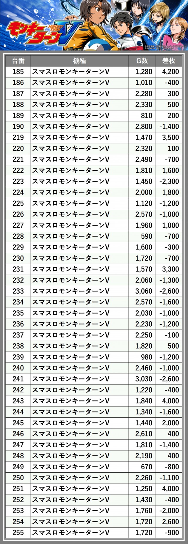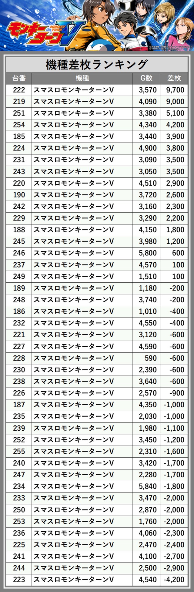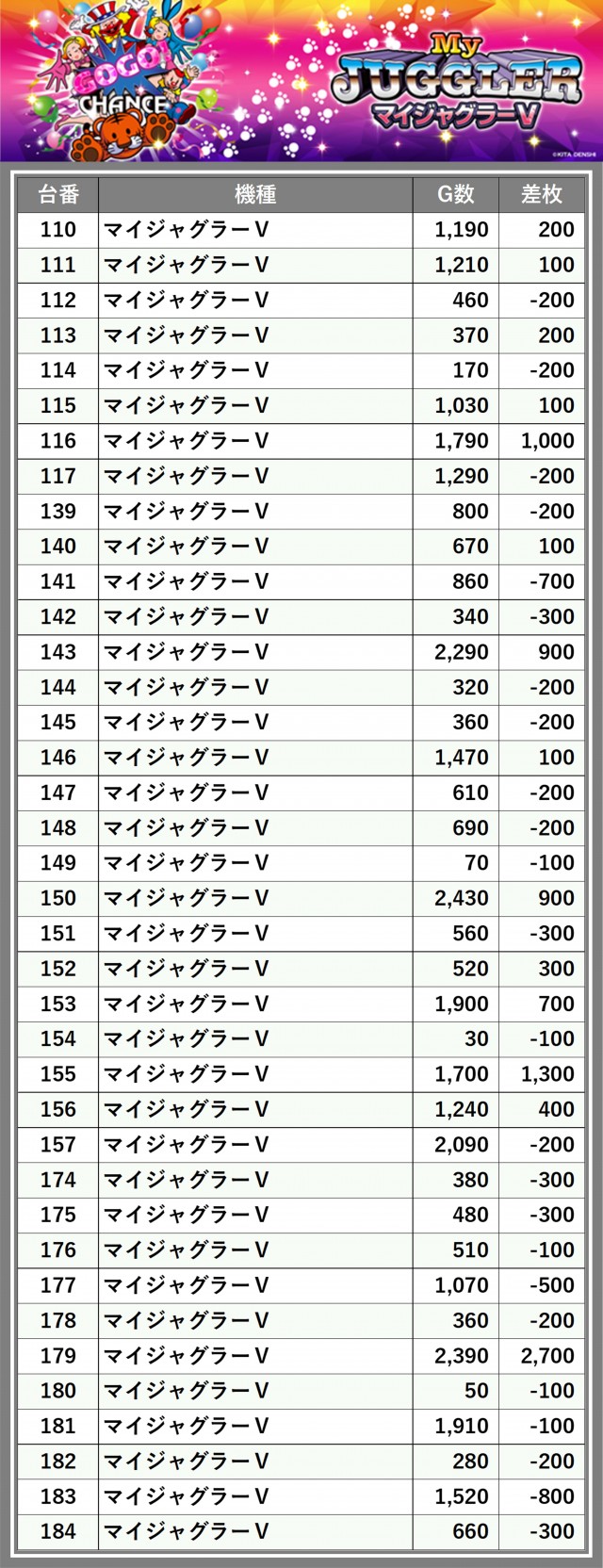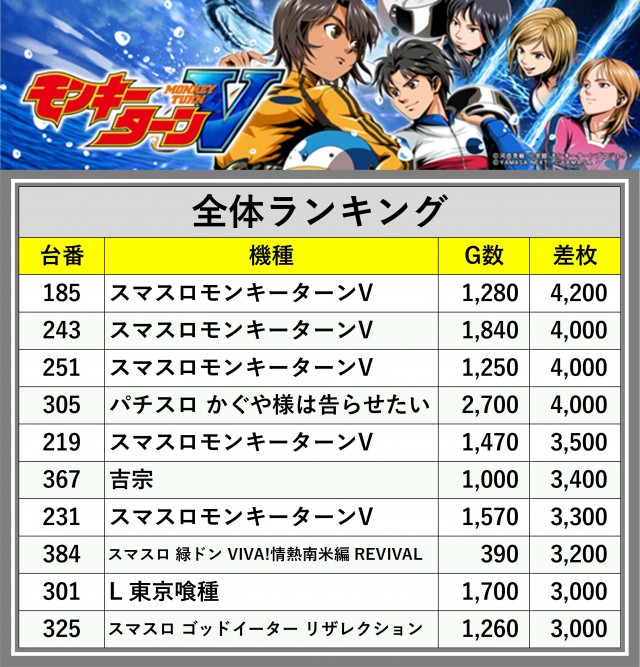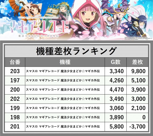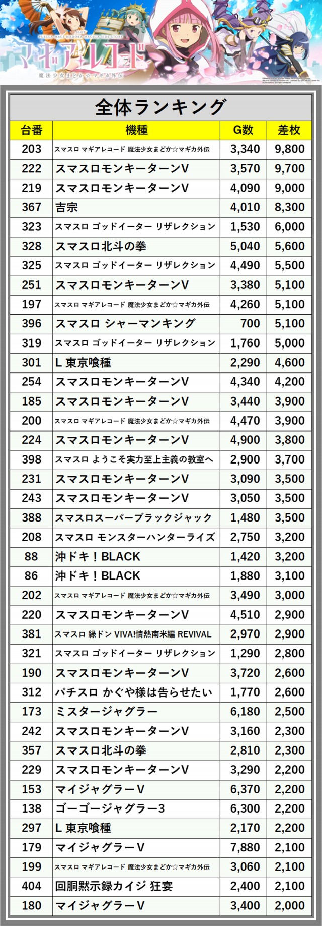 ※差枚数順に掲載しています