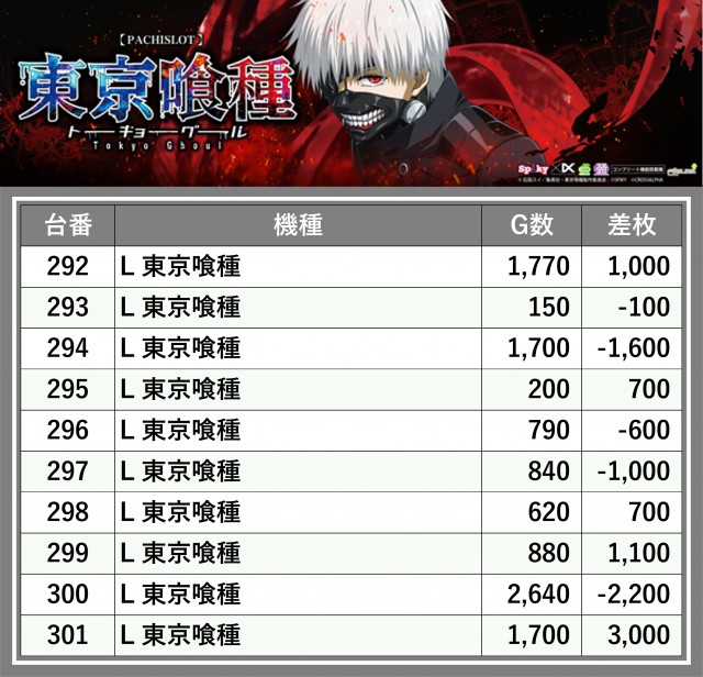 ※台番順に掲載しています