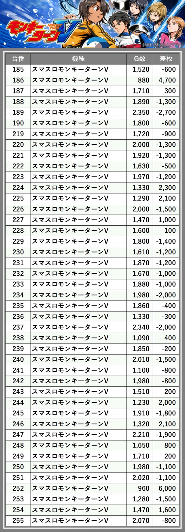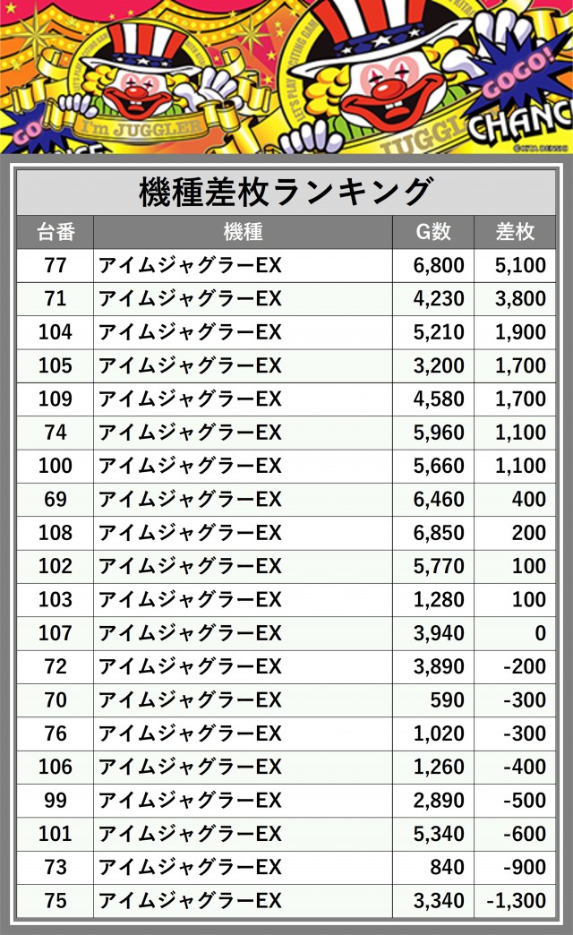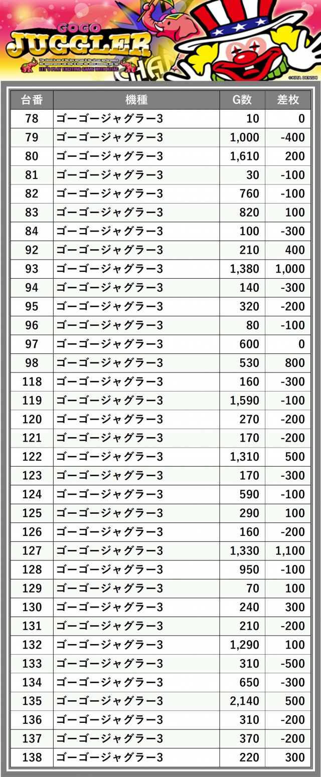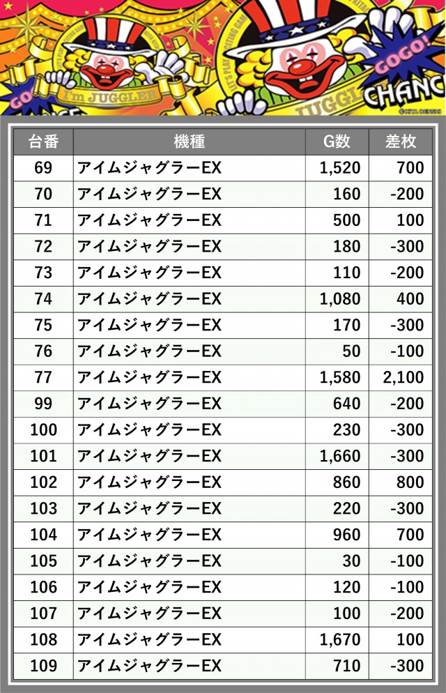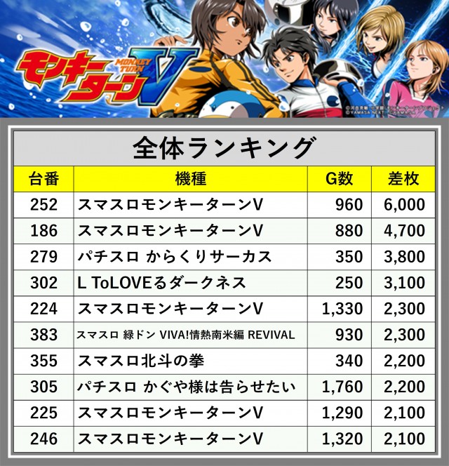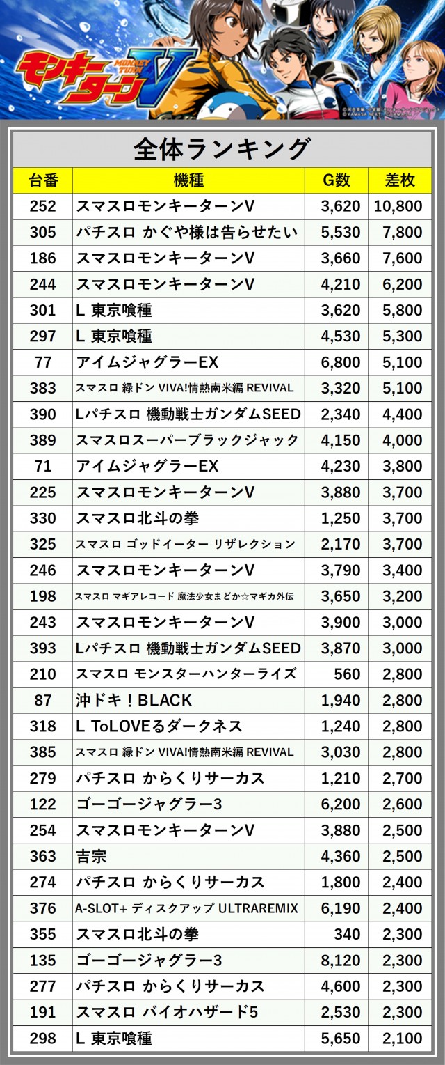 厳選された取材対象機種をはじめ、その他スロット全体から好記録が飛び出した!プレイヤーが楽しんだ1日を下記データにて振り返ってみて欲しい。