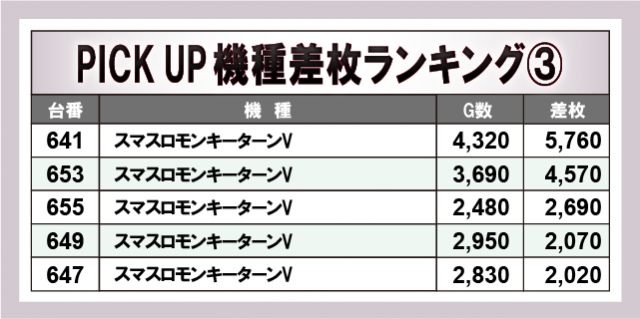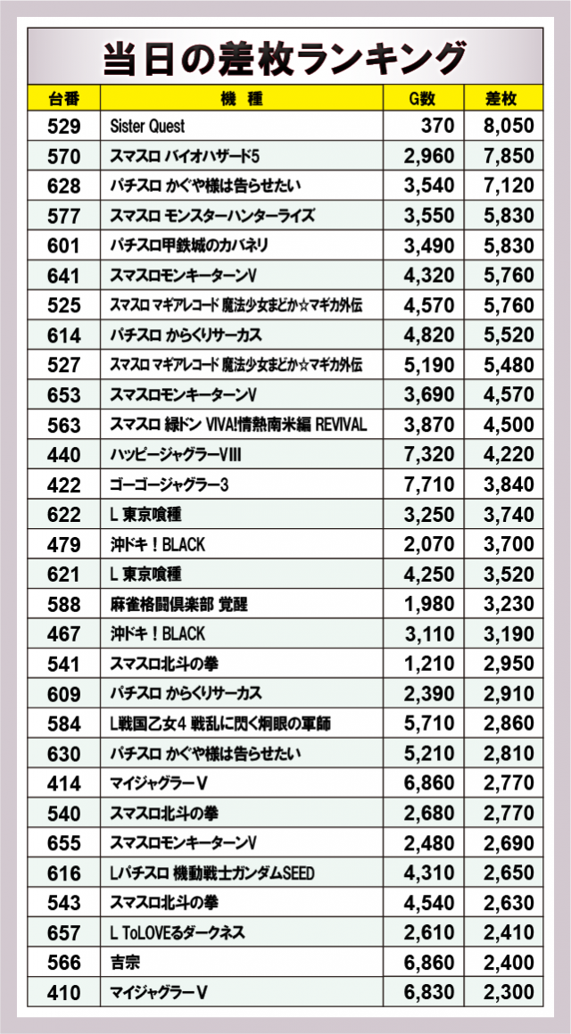 ※差枚数順に掲載しています。