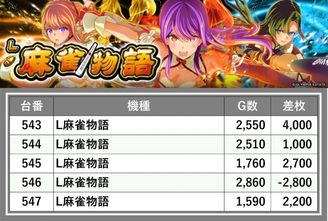 厳選された取材対象機種をはじめ、その他スロット全体から好記録が飛び出した!プレイヤーが楽しんだ1日を下記データにて振り返ってみて欲しい。