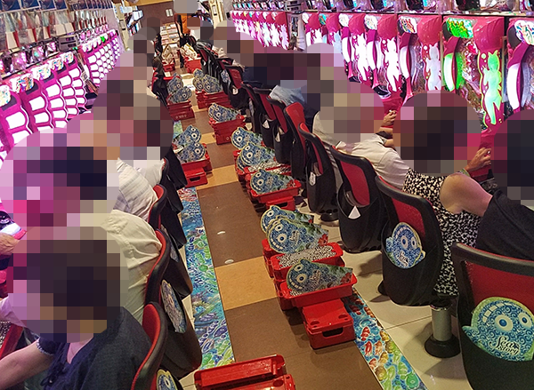 17時頃の4円パチンコをみると、「CRぱちんこ必殺仕事人Ⅴ」と新台の「CRリング 終焉ノ刻」が盛況。ほぼ満席といった稼働率の高さにくわえ、多くのプレイヤーが笑みを浮かべていたことも印象に残っている。