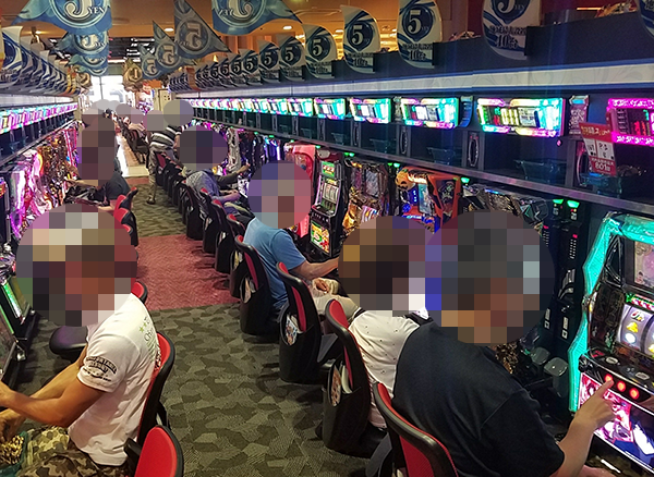 「CRスーパー海物語IN沖縄4」や「ぱちんこCR北斗の拳7 転生」なども人気となっており、にぎやかな雰囲気がシマ全体に広がっていた。