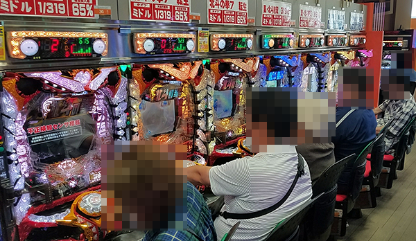 14時頃のパチスロにおいては、「バジリスク~甲賀忍法帖~絆」と「押忍!番長3」が盛況。機種の特徴を活かしているといったプレイヤーが多く、満足度の高さもうかがえた。