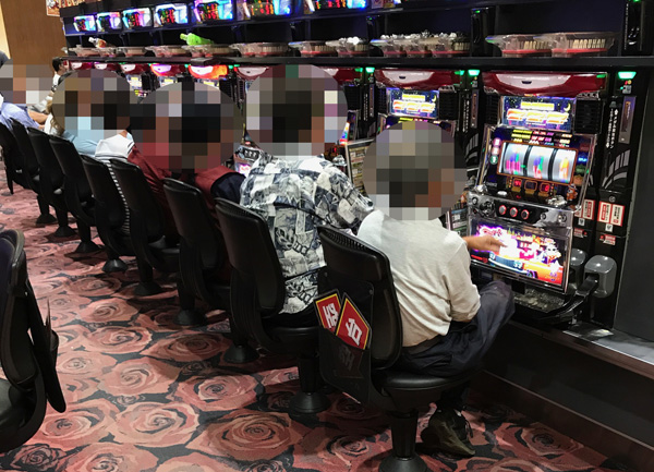20円パチスロをのぞいていみると、「バジリスク〜甲賀忍法帖〜絆」や「ミリオンゴッド-神々の凱旋-」、「押忍!番長3」などが大盛況。プレイヤーたちは心から遊技を堪能しているように感じた。