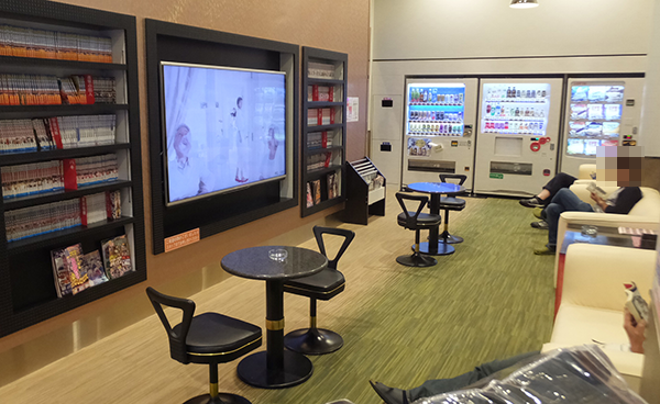 広々としているレストコーナーには漫画本や雑誌、大型テレビなどが用意されている。利用しているプレイヤーは笑みを浮かべており、居心地のよさを感じていたようだ。