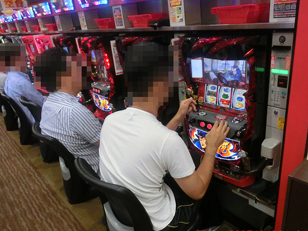 20円パチスロでは「押忍!番長3」や「SLOT魔法少女まどか☆マギカ」、「バジリスク~甲賀忍法帖~絆」といった定番機種の人気が高い。目をひくようなパフォーマンスを披露しているプレイヤーの姿も中にはあり、大きく盛り上がりをみせていた。