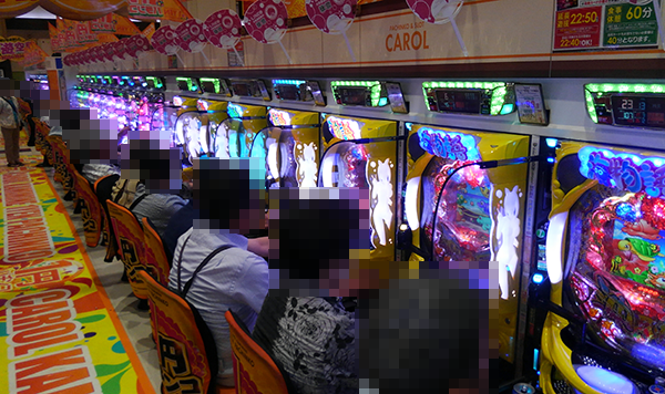 15時頃の4円パチンコにおいて、注目を受けていたのが「CRスーパー海物語IN沖縄4」。機種の性能を引き出しているといったプレイヤーが多く、シマ全体から盛り上がりが感じられた。