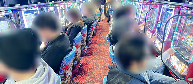 『スマスロ北斗の拳』にて万枚OVERが飛び出し、さらに『パチスロ からくりサーカス』『パチスロ かぐや様は告らせたい』『スマスロ バイオハザード5』でも8~9,000枚OVERをマーク。また『ジャグラー』シリーズでは万回転OVERを筆頭に終日を通して打ち込まれた形跡を確認でき、館内は大きな盛り上がりに包まれていた。ファンは時間の許す限りレバーを叩いており、有意義な時間を過ごしていたことだろう。