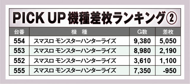 優秀機種として名を連ねた『ジャグラー』シリーズは4機種となっており、いずれも活気と熱気が閉店まで絶えることがなかった。前述したように『ゴーゴージャグラー3』『ミスタージャグラー』『ファンキージャグラー2』は4,000枚OVER、さらに万回転OVERも達成するなど、大きな存在感を放っていたと言えよう。もちろんAT機も負けてはおらず、『L 東京喰種』『スマスロ モンスターハンターライズ』が5,000枚OVERの大台突破を果たしている点も見逃せない。