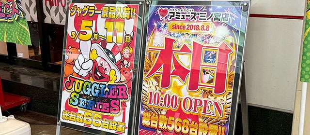 「アミューズ三ノ宮店」にて実施された「英雄のリアル」は大きな活気が閉店まで絶えることなく、それでいて大きな熱気も放たれるなど、大盛況で幕を閉じた。同店の心意気が見られた1日で、ファンもしっかりとレバーを叩いていたのが印象に残るばかり。今後も高いパフォーマンスで迎え入れてくれるのは必至であるため、動向や情報に注視することをオススメするぞ!