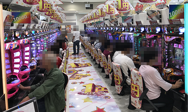 1円パチンコの稼働率も高く、明るい笑顔が多い。