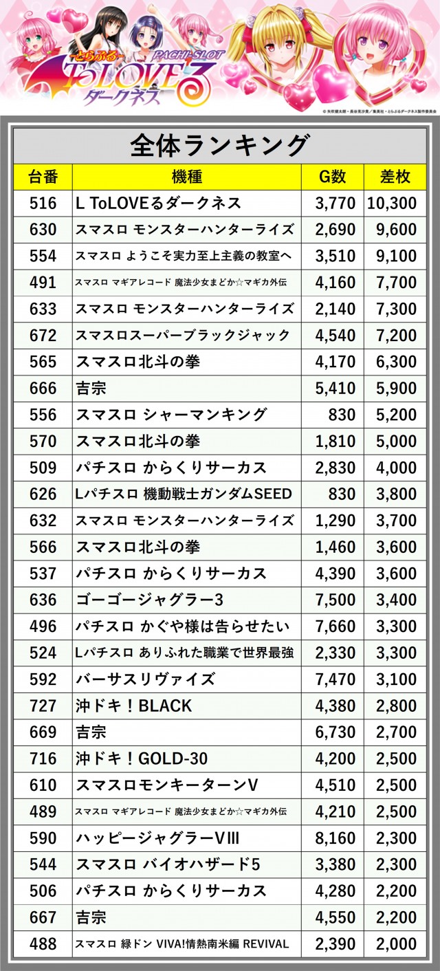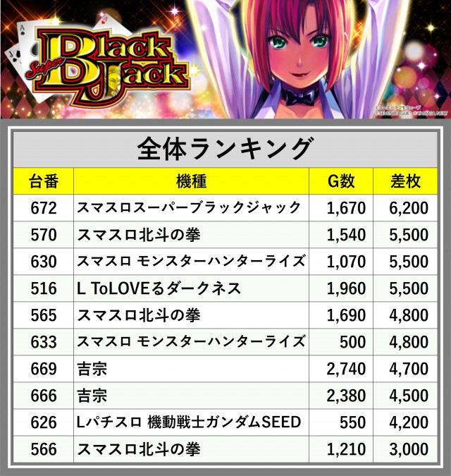 厳選された取材対象機種をはじめ、その他スロット全体から好記録が飛び出した!プレイヤーが楽しんだ1日を下記データにて振り返ってみて欲しい。
