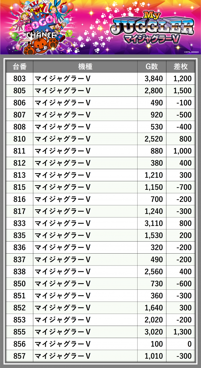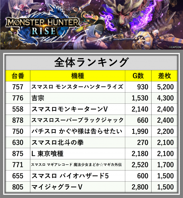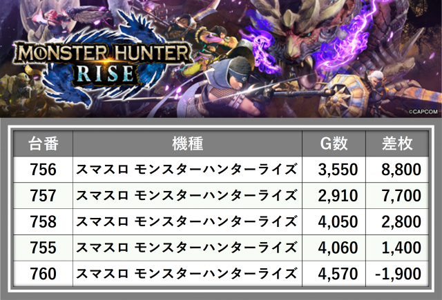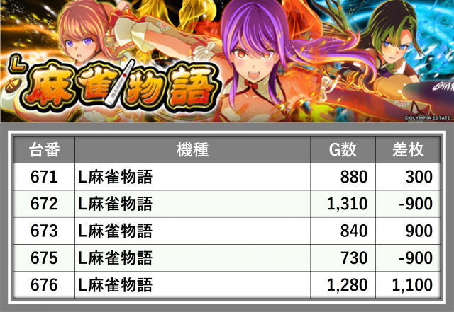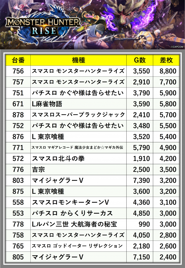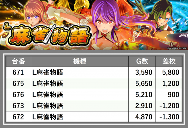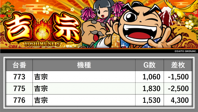 厳選された取材対象機種をはじめ、その他スロット全体から好記録が飛び出した!プレイヤーが楽しんだ1日を下記データにて振り返ってみて欲しい。