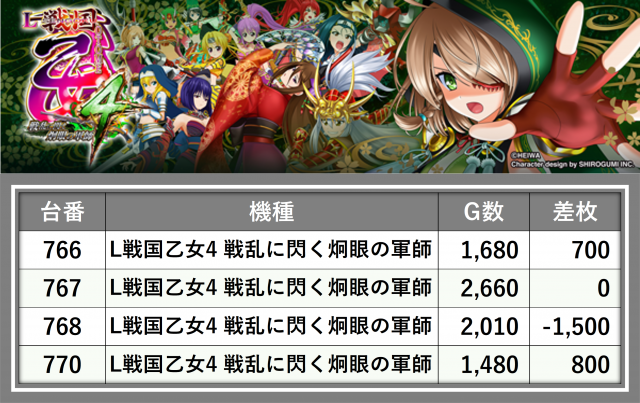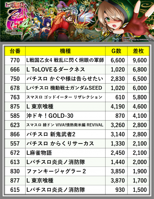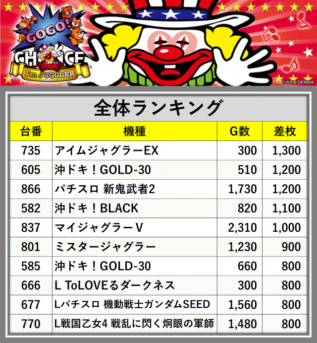 厳選された取材対象機種をはじめ、その他スロット全体から好記録が飛び出した!プレイヤーが楽しんだ1日を下記データにて振り返ってみて欲しい。