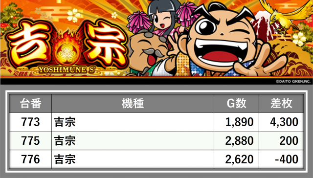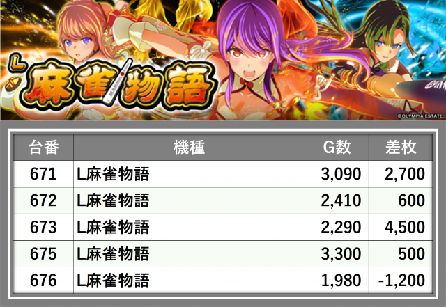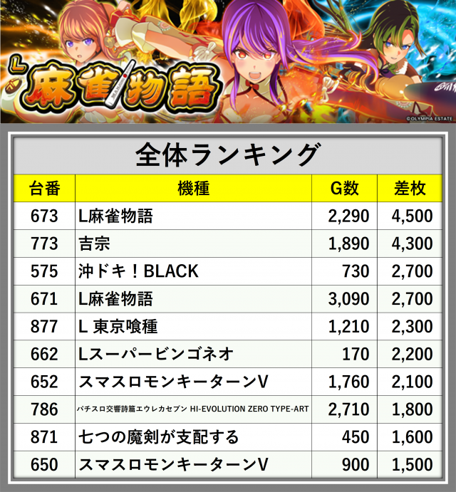 厳選された取材対象機種をはじめ、その他スロット全体から好記録が飛び出した!プレイヤーが楽しんだ1日を下記データにて振り返ってみて欲しい。