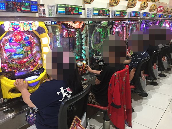 1円パチンコにおいても4円パチンコ同様、海物語シリーズやぱちんこCR北斗の拳シリーズといった定番機種が好評。じっくりと機種の醍醐味を味わうプレイヤーたちが、シマ全体にあふれていた。