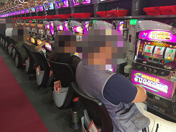 定番のジャグラーシリーズをはじめとした、ボーナスタイプのシマに広がる光景も実に華やか。特に「スーパーミラクルジャグラー」では、見事な活躍をするプレイヤーが周囲の注目を集めていた。