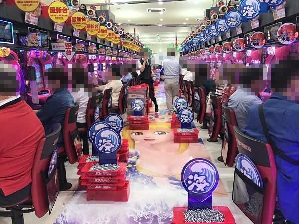 海物語シリーズも人気が高い。特に新機種「CRスーパー海物語IN沖縄4 桜バージョン 新マックス319ver.」が高い支持を集めており、楽しそうな笑顔で遊技しているプレイヤーを多数確認できた。