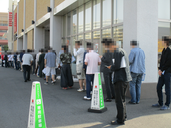 8時30分から行われた入場抽選には、パチンコ・パチスロ合わせて50人以上のプレイヤーが集まり、一般入場者も32人と合わせて80人以上のプレイヤーが開店の瞬間を心待ちにしていた。