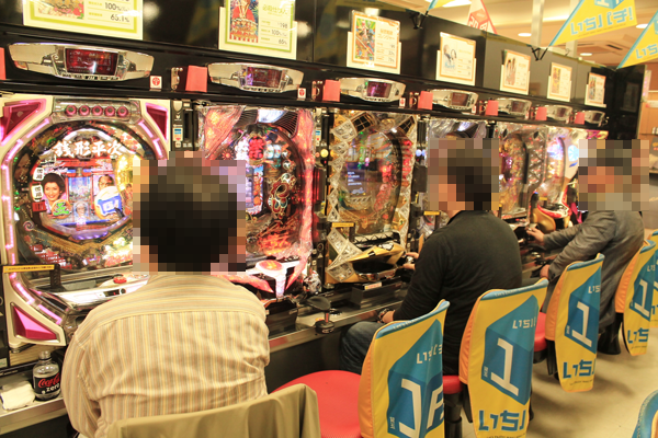 14時を過ぎた頃には、パチスロコーナーは「押忍!サラリーマン番長」や「バジリスク~甲賀忍法帖~絆」を中心に大盛況。この2機種は朝イチから同じ台を遊技し続けるプレイヤーもいるなど、納得した表情のプレイヤーがとくに多いように感じた。