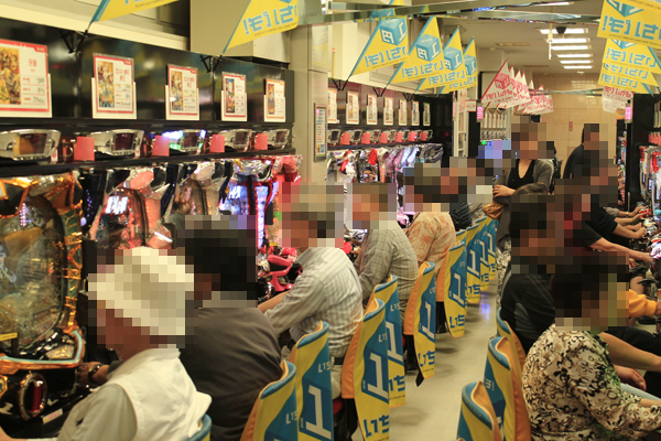 4円パチンコは朝から支持されていた羽根デジに加え、MAXタイプも好評となっており「パチンコCR貞子3D」や「CRヱヴァンゲリヲン9」、「CR牙狼 金色になれ」のシマが、たくさんのプレイヤーで賑わっていた。