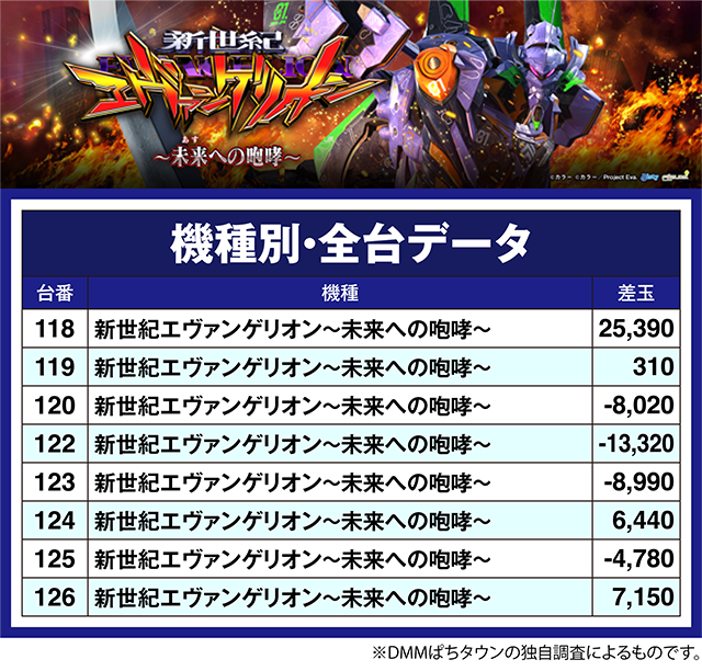 「新世紀エヴァンゲリオン~未来への咆哮~」の118番台が25,390pt!