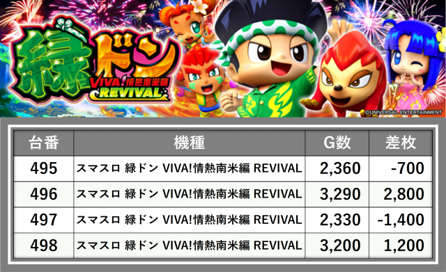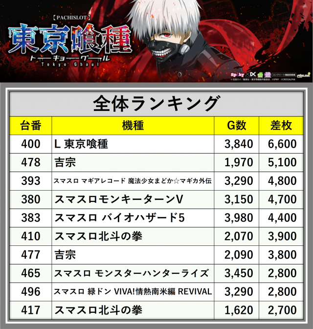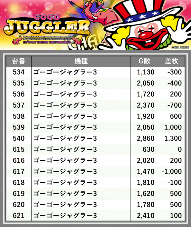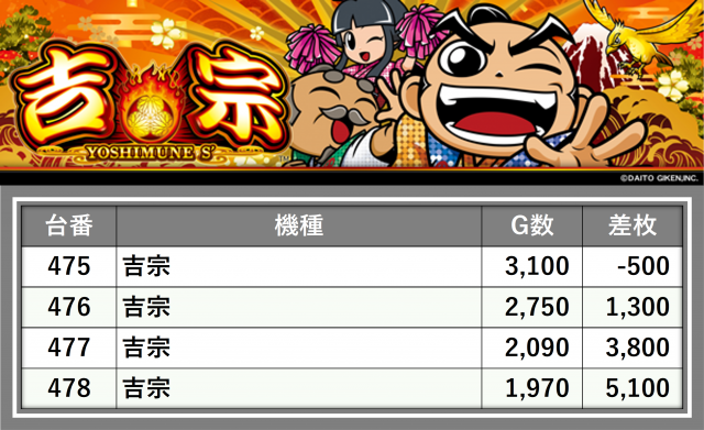 厳選された取材対象機種をはじめ、その他スロット全体から好記録が飛び出した!プレイヤーが楽しんだ1日を下記データにて振り返ってみて欲しい。