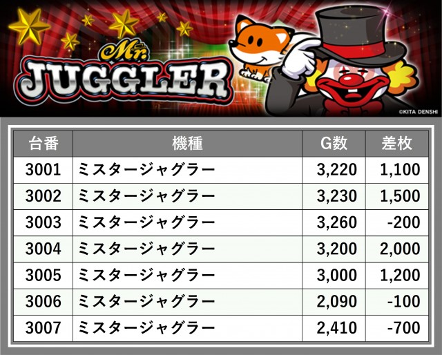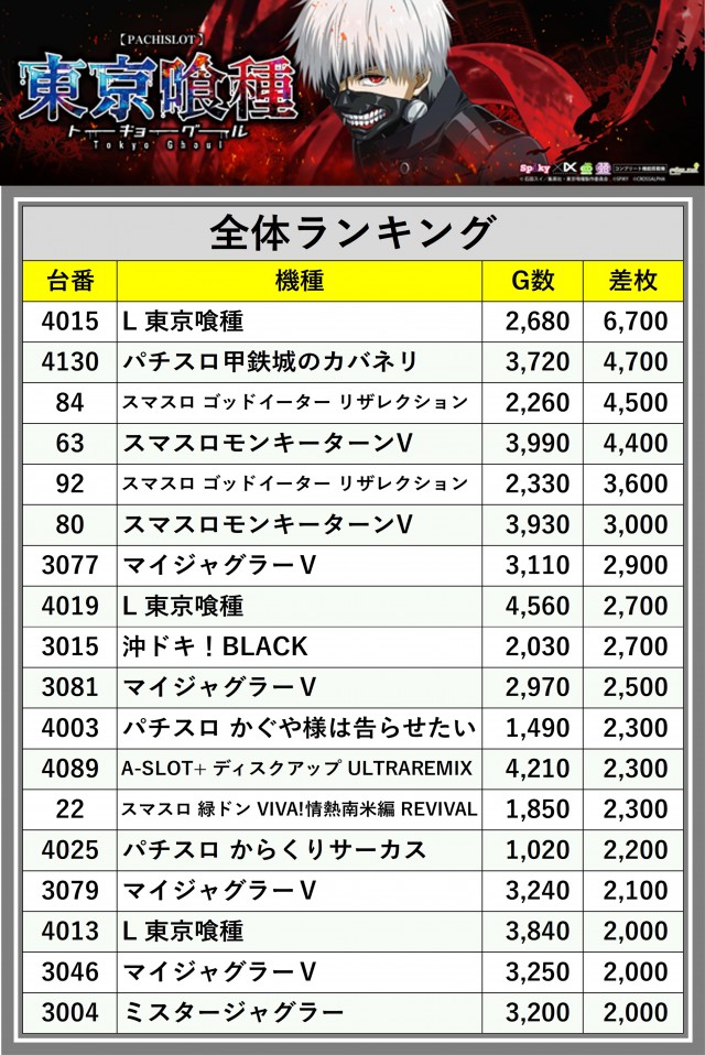厳選された取材対象機種をはじめ、その他スロット全体から好記録が飛び出した!プレイヤーが楽しんだ1日を下記データにて振り返ってみて欲しい。