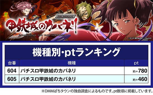 「パチスロ甲鉄城のカバネリ」も複数台がプラス。