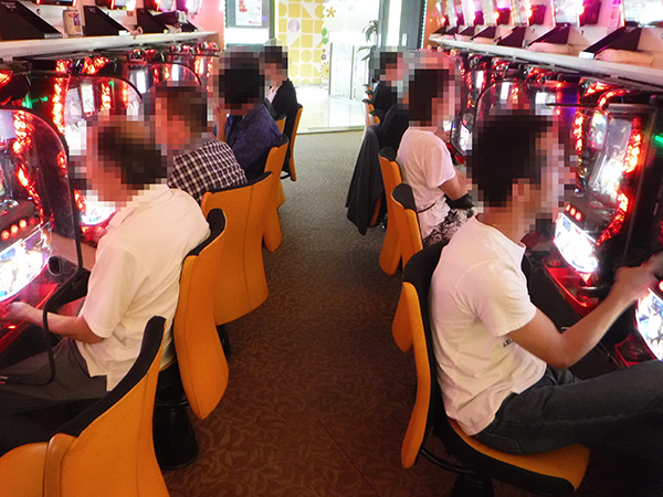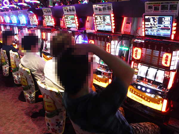 取材時は既に多くのプレイヤーであふれかえっており、店内はパチンコ・パチスロを問わず楽しげな笑顔でいっぱいだった。