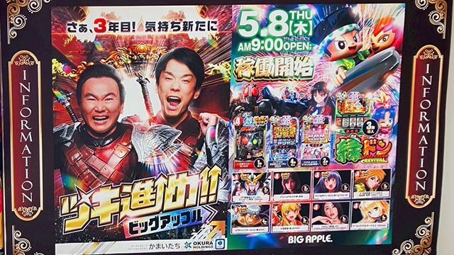 5月15日、「ビッグアップル.周南」にて「英雄のリアル」が実施された。5月最初の実施とあってか、開店前から集まる85人のファンの顔からはソワソワとした期待感が十二分に感じとれた。万枚オーバーも出現し、かなりのヒートアップぶりを見せた前回をうけ、今回はどのような結果となるだろうか。それではさっそく、1日を振りかえっていこう!