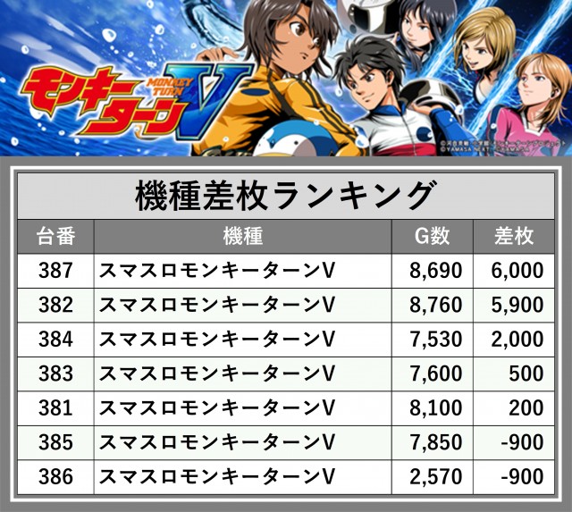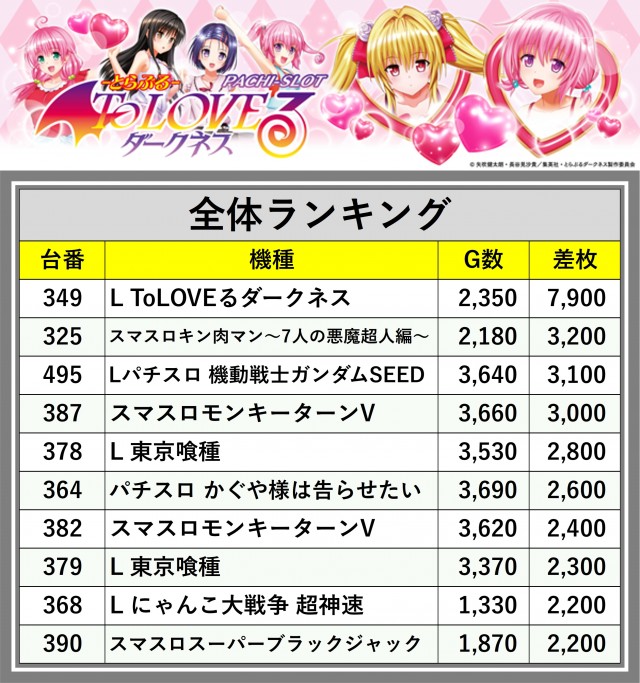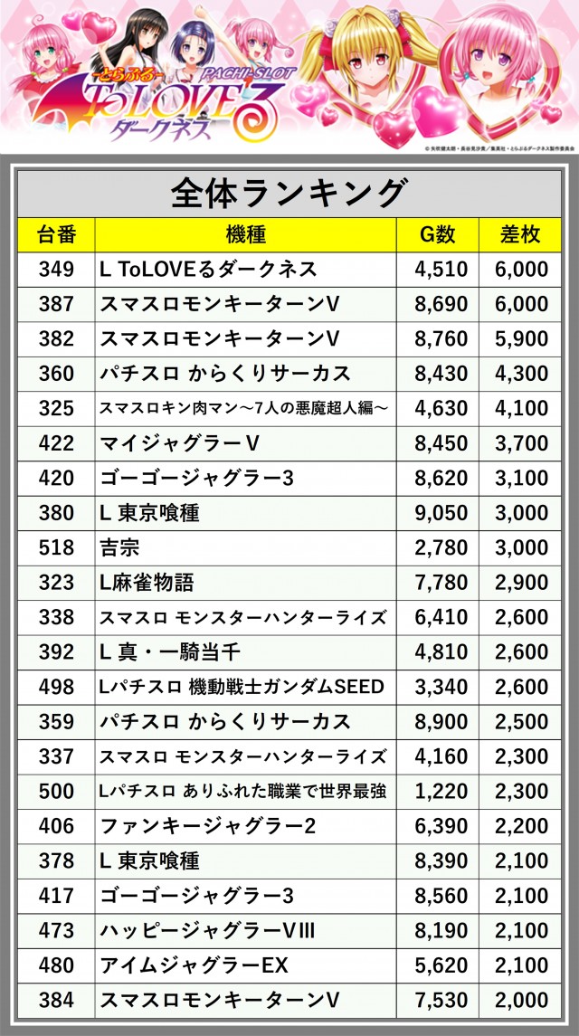 ※差枚数順に掲載しています
