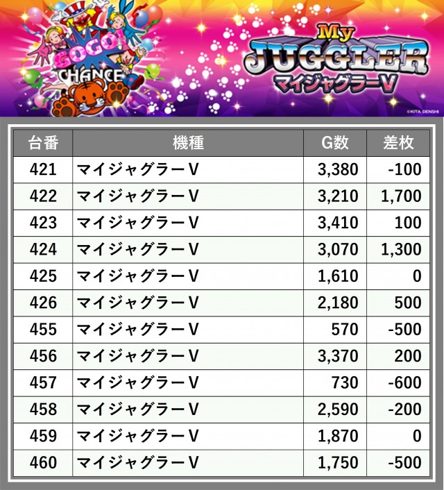 厳選された取材対象機種をはじめ、その他スロット全体から好記録が飛び出した!プレイヤーが楽しんだ1日を下記データにて振り返ってみて欲しい。