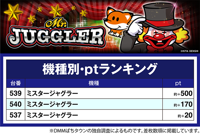 「アイムジャグラーEX」と「ミスタージャグラー」も多くの台が結果を残した。