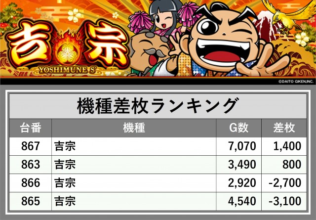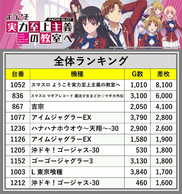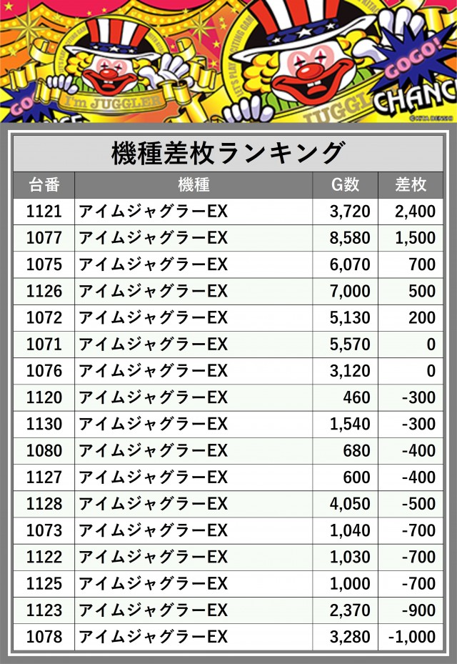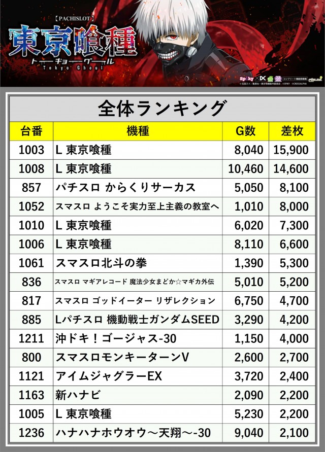 厳選された取材対象機種をはじめ、その他スロット全体から好記録が飛び出した!プレイヤーが楽しんだ1日を下記データにて振り返ってみて欲しい。