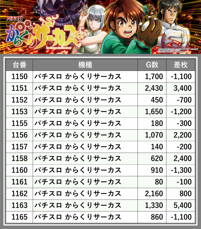 ※台番順に掲載しています