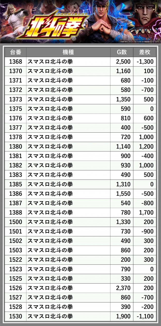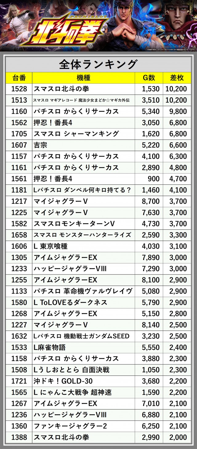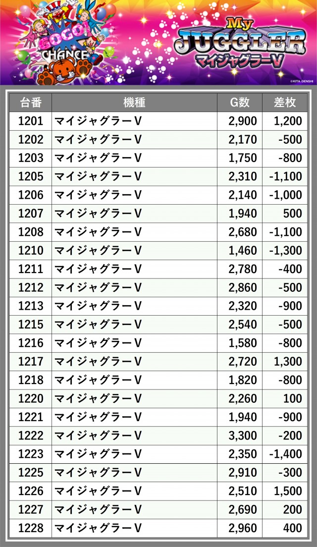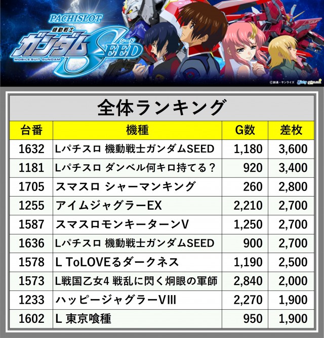厳選された取材対象機種をはじめ、その他スロット全体から好記録が飛び出した!プレイヤーが楽しんだ1日を下記データにて振り返ってみて欲しい。