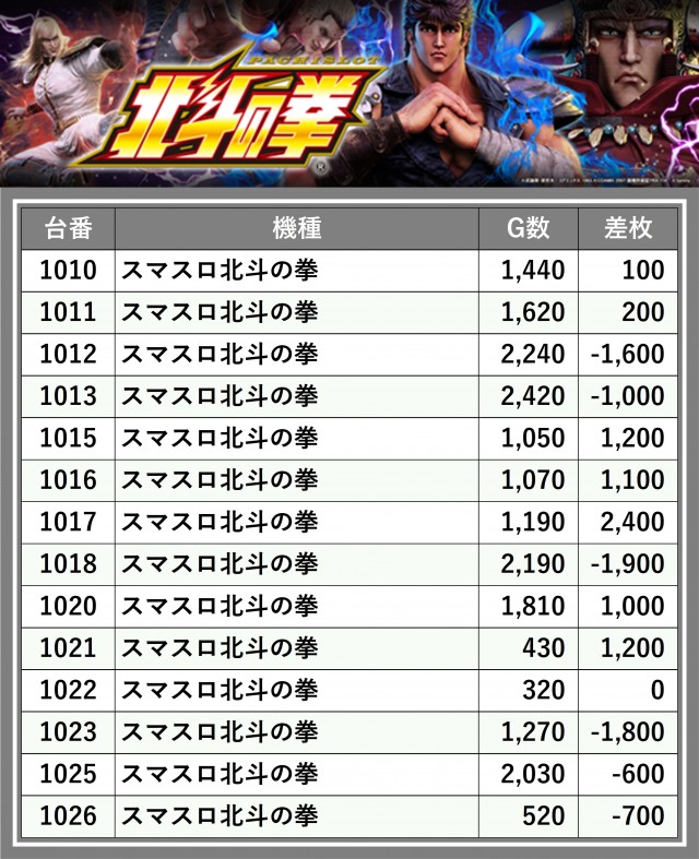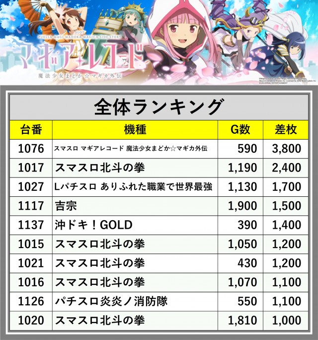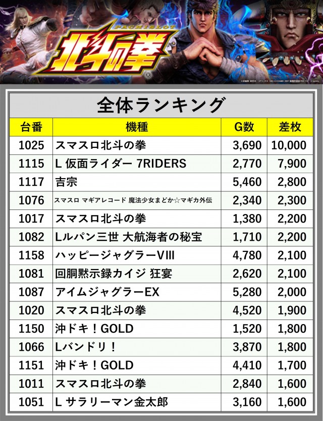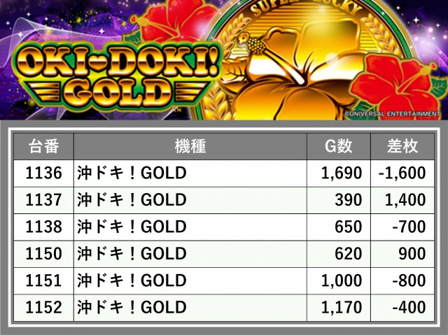 厳選された取材対象機種をはじめ、その他スロット全体から好記録が飛び出した!プレイヤーが楽しんだ1日を下記データにて振り返ってみて欲しい。